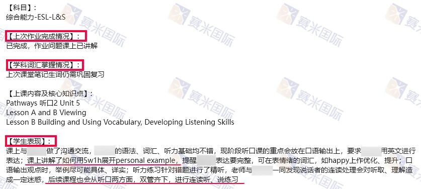 我平时语法和词汇基础还可以,但口语表达欠佳。在ESL课上老师更多会带我练习口语表达。比如有一节课上我学习了通过5W1H展开personal example,这让我的观点表达得更完整。同时练习时老师还会提醒我用更多情绪词来丰富描述,比如happy之类的。听力部分,我们一起精听错题,发现说话者的连读容易让我漏信息,所以后续课程也会针对听说连读训练。我觉得每节课都能把自己的观点讲得更具体、更清楚,慢慢敢在课堂上用英语自由表达了。——武汉爱莎G10 J同学