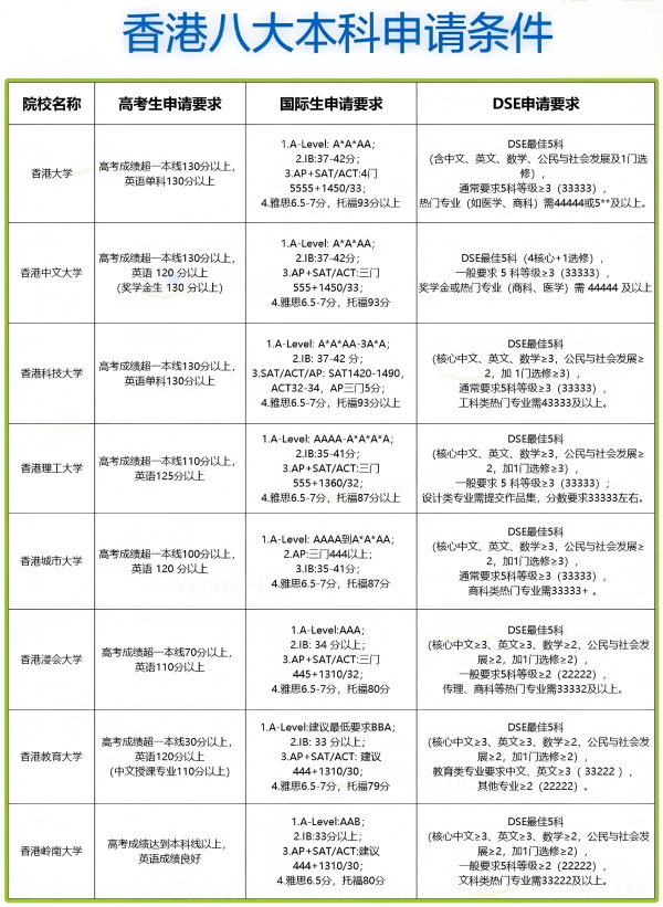 02、 香港八大本科申请条件 & 招生方式