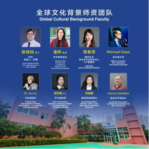 学校不仅拥有一支长期稳定且专业过硬的教育教学和管理团队,还汇聚了众多教学经验超过20年的资深教师。全体教师的平均教学经验超过9年,其中75%以上的教师拥有硕士学位。中外师资均毕业于约翰斯·霍普金斯大学、加州大学圣塔芭芭拉分校、佛罗里达大学、罗切斯特大学、谢菲尔德大学、多伦多大学、悉尼科技大学、香港中文大学、香港大学、中国传媒大学、武汉大学、北京师范大学等国内外顶尖学府,大部分中教老师还拥有海内外的学习经历。