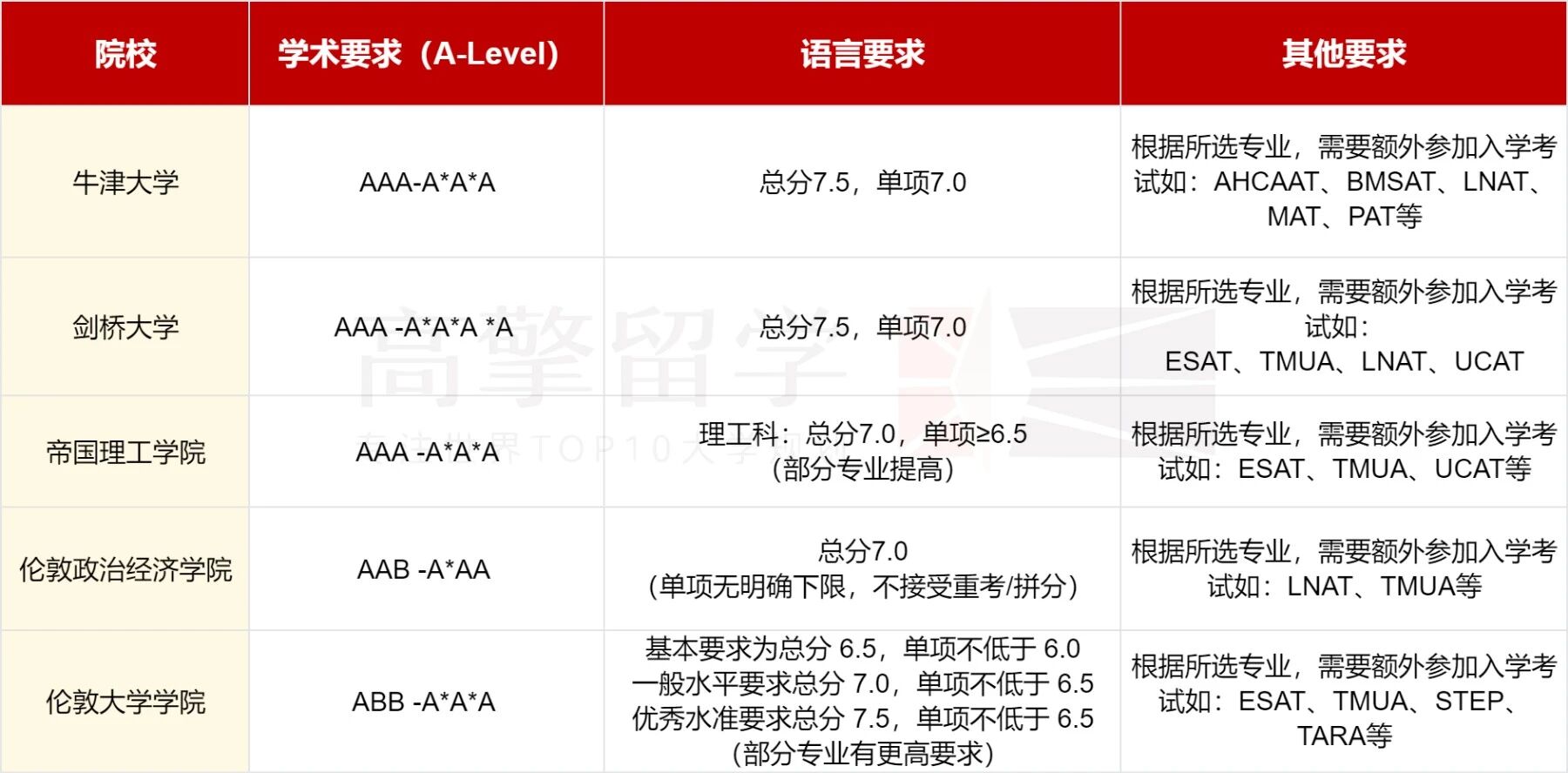 英国G5院校本科申请基本要求(2025年)