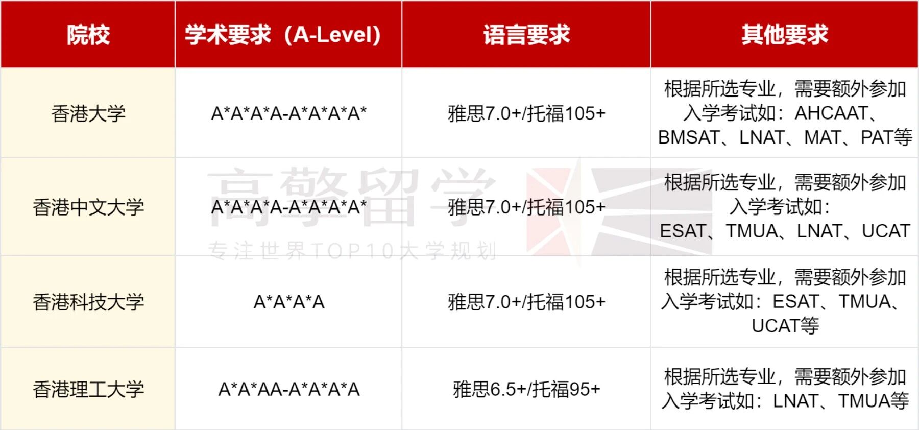 港前四院校本科申请基本要求(2025年)