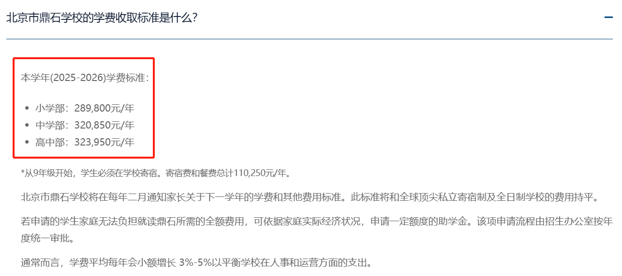 北京贝赛思的初步学费定价着实令人咋舌。K - G5阶段学费为32万,初中G6 - G8阶段是32.8万,高中G9 - G12阶段则高达34.5万。从G5开始,学生可以申请住宿,学校提供800个寄宿学位,不过住宿费也不低,2人间每年7万,3人间每年6万。