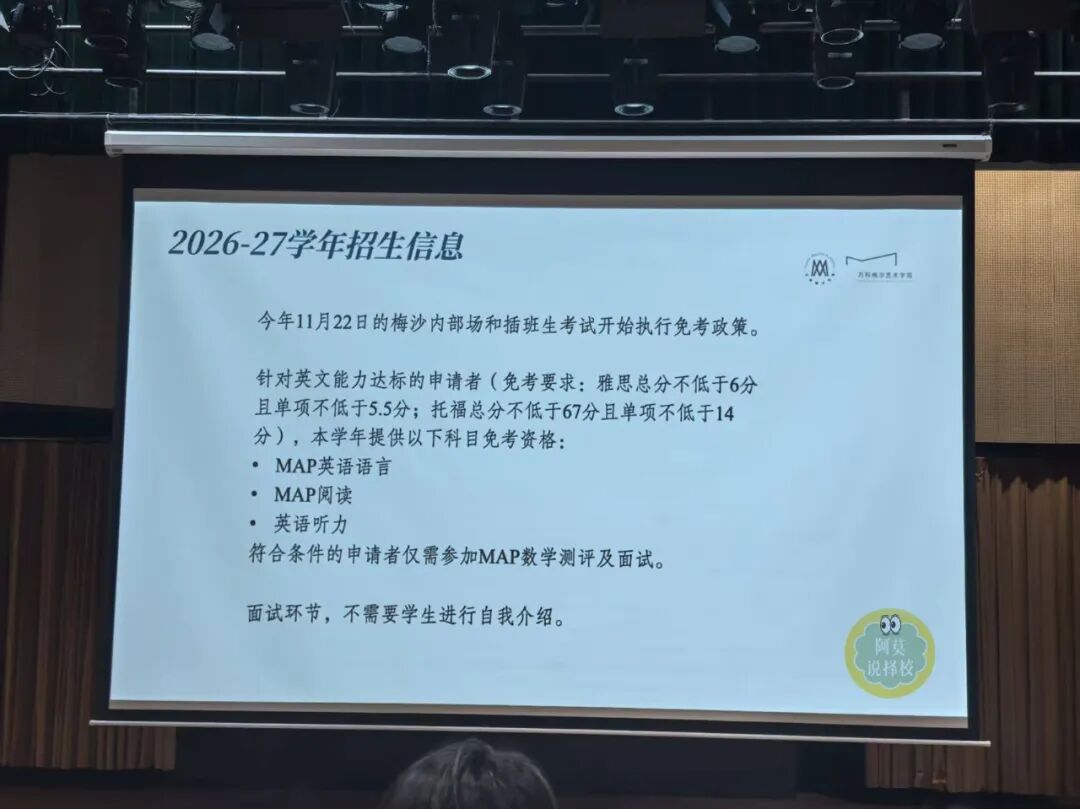 今年11月22日的梅沙内部场和插班生考试开始执行免考政策,学校将通过面试对学生进行综合素质评估,并关注学生及家庭与国际教育的契合度。