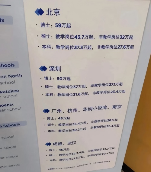 北京贝赛思在教师招聘的薪酬体系上也展现出了十足的诚意:博士59万年薪起、硕士43.7万年薪起、本科37.3万年薪起。这一薪资标准比深圳校区高出18%,成为贝赛思中国体系中的薪资天花板。