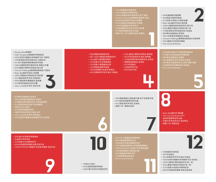 我们在全年筛选了超100个不同难度级别的学科竞赛,匹配获奖经验丰富的授课老师分阶段指导,从竞赛基础培训到冲刺备赛全程跟进,帮助学员在数学、物理、计算机等领域斩获奖项,为申请顶尖院校增添学术竞争力,契合名校对学科能力的高阶要求。