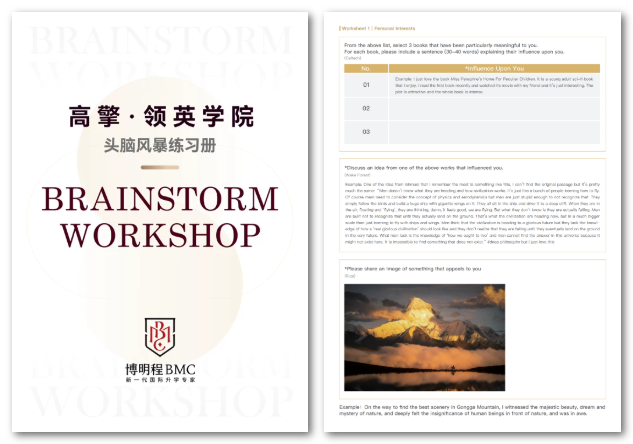 围绕个人兴趣、生活经历、智识成长三个维度 ,我们引用申请的经典文书和面试题目 ,启发学员的思考,也有助于我们深入了解学员特质,为其规划合适的申学方案。