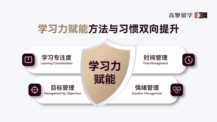 时间管理、目标管理、情绪管理、学习专注度等维度,为学生提供学习力赋能辅导,并贯穿全程“会学的人,才配得上更高的上限”。