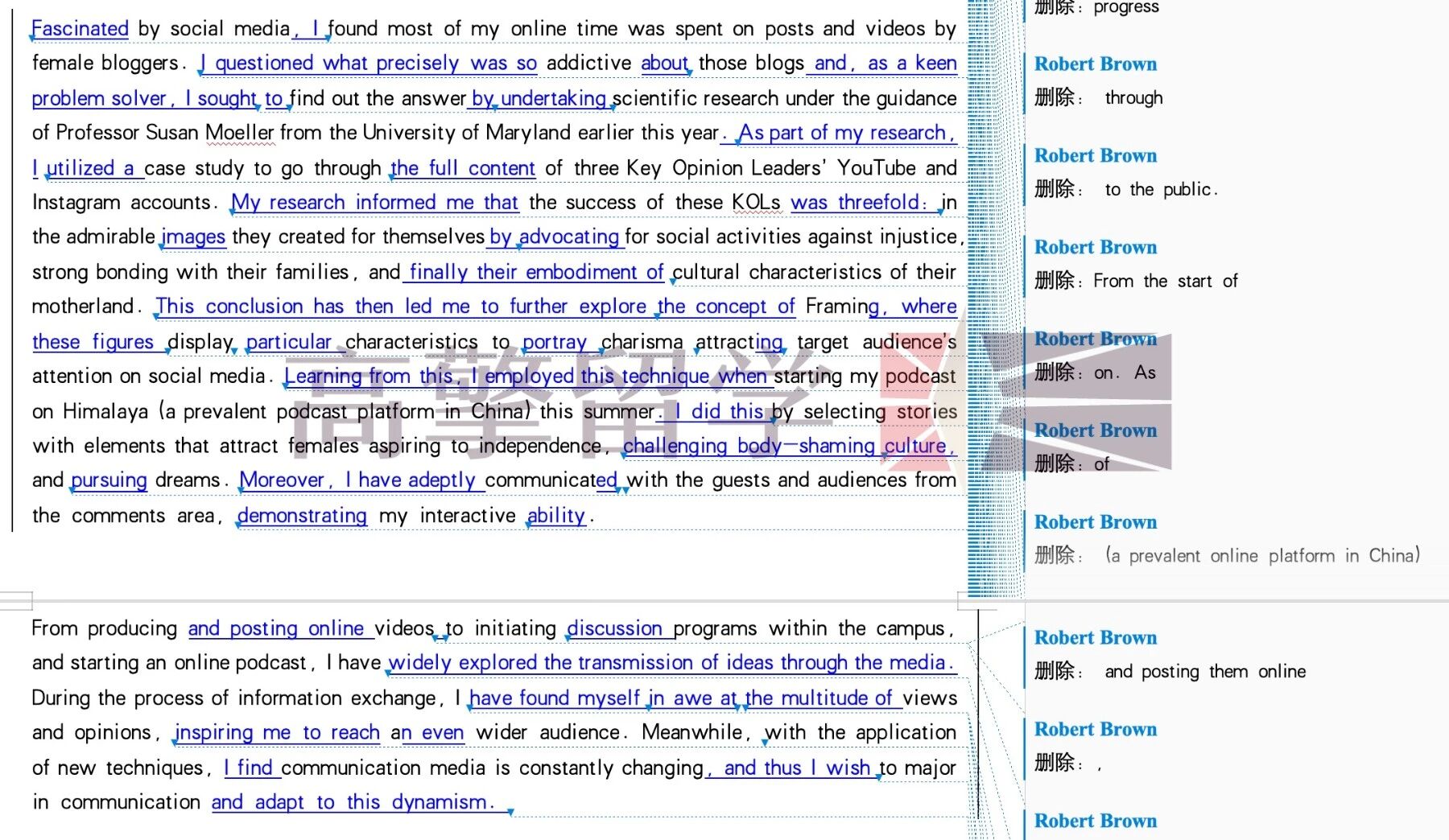 针对目标大学申请文书要求,从选题到打磨,深挖真实经历,搭建属于学生的叙事框架;避免模板化与空话,展示个人成长故事与独特申请形。