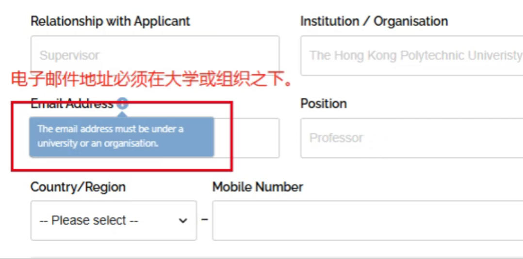 推荐人邮箱必须为大学或机构域名(如 @edu、@公司域名),个人邮箱(如 Gmail、QQ、163邮箱)大概率会被判定无效。